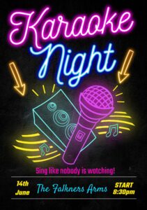 Our first Karaoke Night in May proved a great success so come along and belt out your favourite anthems – your adoring audience awaits!!!