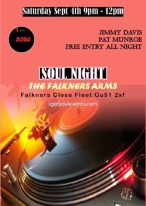 Soul DJ Night When 04/09/2021 9:00 pm Add To Calendar Download ICS Google Calendar iCalendar Office 365 Outlook Live And now for something completely different…a soul night featuring two fantastic Club DJs. Not our usual offering of the best live bands around but who knows, if we get good feedback we may look to bring it back as a regular feature in the future.